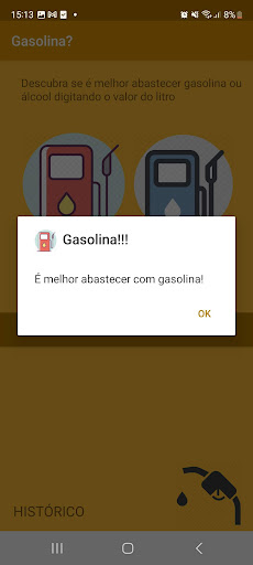 O App Gasolina tem como foco principal ajudar os motoristas a decidirem se é melhor abastecer com álcool ou gasolina, além de servir como uma maneira de se registrar os gastos com abastecimentos e guardar isto em um histórico para analises futuras dos seus gastos.