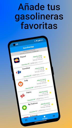Puedes añadir gasolineras favoritas para poder ver rápidamente el precio de tu gasolinera favorita sin importar donde estés.
