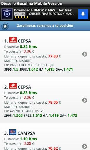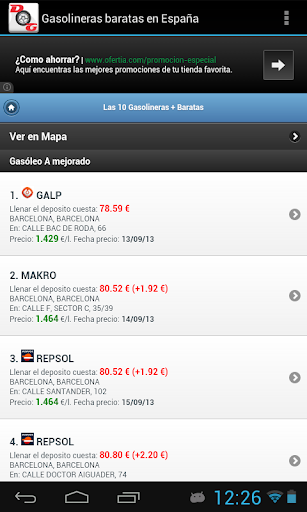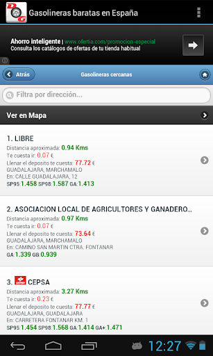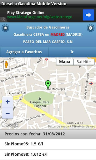 – Cada ficha de gasolinera tiene disponible su ubicación mediante Google Maps, con una opción para ir mediante navegación GPS a la misma.
