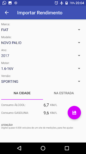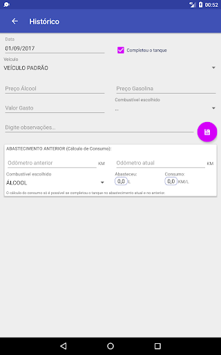If you are unsure consumption in KM / L of your vehicle, we have a service that allows you to import a file with a measurements, facilitating the registration of their vehicles and leaving the more accurate calculation.