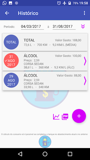 You can also save the made supplies and can follow, through chart, the evolution of fuel prices.