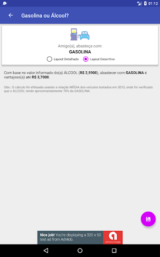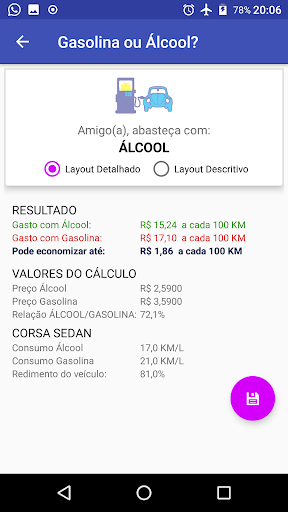 You enter the price per liter of alcohol AND / OR the gasoline and the application calculates which fuel is more advantageous at the pump.