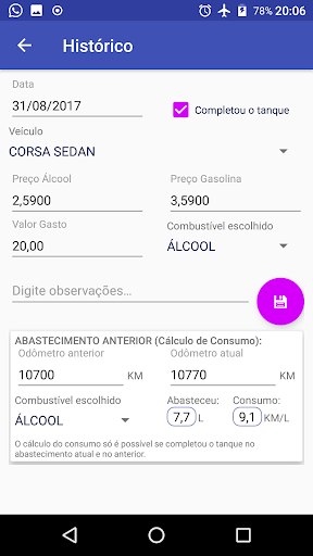 You can also register the consumption of their vehicles, not to use this standard percentage of 70%, which is the value used by most apps on the market.