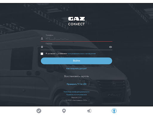 Скачайте бесплатное мобильное приложение GAZ Connect, чтобы в режиме реального времени быть на связи со своим автомобилем ГАЗ.
