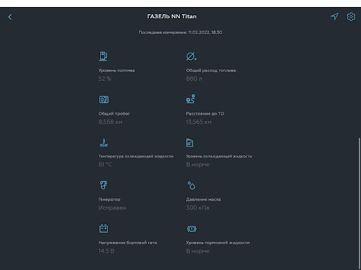 • Техническое состояние автомобиля (диагностические коды неисправностей в памяти блоков управления, температура охлаждающей жидкости, давление масла и т.д.)