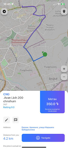 Gaz Station will help motorists find the nearest gas station (propane, methane). Plan the route to refuel (using Yandex.Navigator), taking into account traffic jams and road events.
