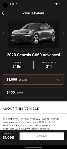 With Genesis Reserve, you’ll gain exclusive access to a premium fleet of Genesis models.
