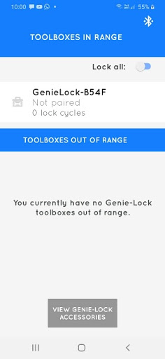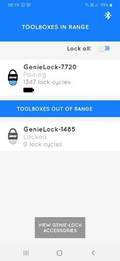 Fit a Genie-Lock automatic toolbox lock to your Snap-On toolbox and with this app open on your smartphone your toolbox will automatically lock when you walk far away enough to loose the Bluetooth connection and will unlock your toolbox when you are close enough for your Phone to automatically connect again.