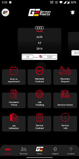 My car’s is where you can view your car information, warranty and service contract details at a glance. Just log in to the app using a mobile number registered with German Experts Car Maintenance and your car details will be fetched automatically.