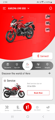 Documents: Keep all your two-wheeler related documents safe and handy, stored digitally on the app. This includes your Driving License, Registration Certificate, Insurance, P.U.C., and others.