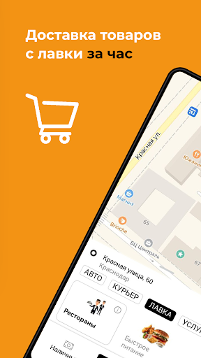 Сервис для заказа готовой еды из любимых кафе и ресторанов: от бургеров до суши, от борща до мороженого. Найдётся и пицца, и роллы, воки, бургеры, клаб сэндвичи, грузинская кухня. А ещё продукты из других магазинов продуктов. Доставка продуктов и товаров для дома из Лавки примерно за 15 минут. Курьер будет у вас в среднем через 32 минуты.