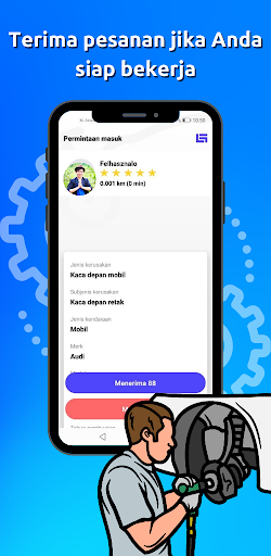 Become a Rider at GOmontir and get orders from customers around you. As a Rider, you provide a mobile service to customers on the road and come to help when you get a request from vehicle owners. In the app add your skills and availability so your profile will be shown to customers when they need help.