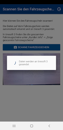 Scannen Sie den Fahrzeugschein Ihrer Kunden. Dieser wird automatisch an Tiresoft3 geschickt.