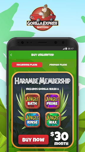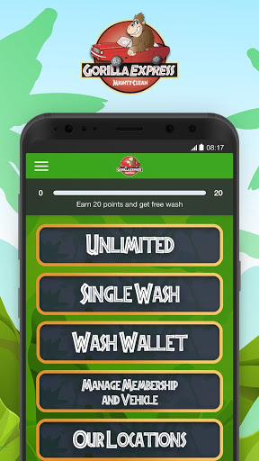 The Gorilla Express Auto Wash App provides users the ability to purchase washes and memberships online, send washes as gifts, access exclusives offers and discounts, and manage their Unlimited Membership account.