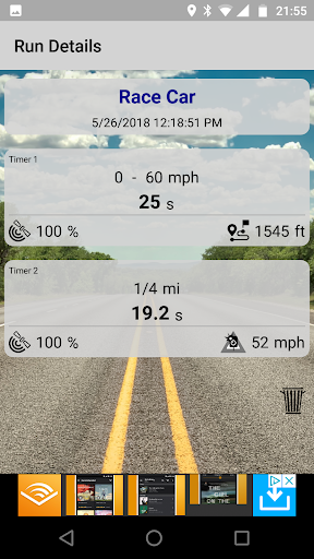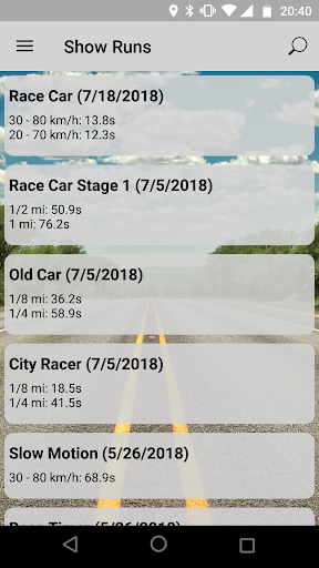 The app supports drag races such as 1/4 mile races or speed-based races such as 100 – 200 km/h and can measure up to two times per race.