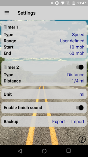 With GPS Race Timer you can measure the acceleration times of your vehicle.