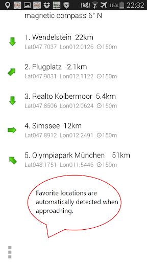 Departure, break and favorite places are automatically detected and recorded, even offline.