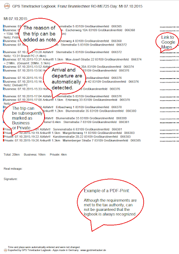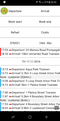 ✔ move off and stop are automatically recognized with gps and logged as departure and arrival