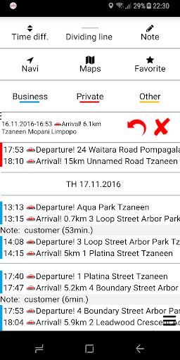 ✔ move off and stop are automatically recognized with gps and logged as departure and arrival