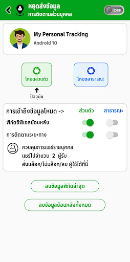ข้อมูล “ติดตามส่วนบุคคล” เมื่อเปิดใช้คุณสมบัตินี้ตัวแอปจะทำการส่งพิกัดจีพีเอสเข้าสู่ server ในอัตรา +/-40 วินาที ต่อ 1 ครั้งวนไปเรื่อยจนครบจำนวนชั่วโมงที่ user กำหนดให้ทำงาน ข้อมูลพิกัดนี้เป็น timeline ของตัว user เองสามารถดูย้อนหลังและ แชร์ให้กับใครที่ตัวเองเป็นผู้แชร์ออกไป (ถ้ากำหนดให้ข้อมูลเป็นแบบส่วนตัว) ในอีกด้านของข้อมูลนี้นำไปคำนวณระยะรัศมีเป็นกิโลเมตร เพื่อประโยชน์ในการติดตาม และรายงานผลติดตามในคุณสมบัติที่ชื่อว่า “ติดตามระยะทาง” ทั้ง 2 คุณสมบัตินี้ สามารถใช้ติดตามยานพาหนะ หรือ ติดตามบุคคลก็ได้ แต่อาจจะมีข้อกังวลในเรื่องความเป็นส่วนตัวของ user อย่างไรก็ตาม user มีสิทธิ์ในการเปิด หรือ ปิดการใช้งานได้ด้วยตัวเองตลอดเวลา ขณะเดียวกันแอปมีคำสั่งลบข้อมูล timeline ทั้งหมดเตรียมไว้แล้ว user สามารถใช้คำสั่งลบข้อมูลได้ด้วยตัวเอง