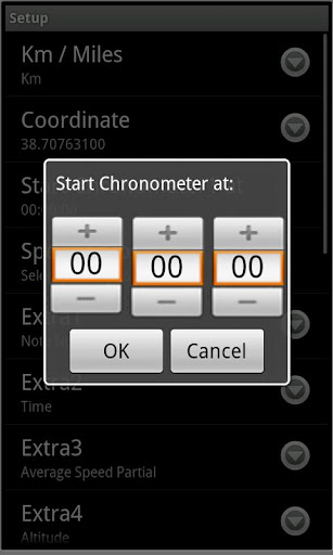 – Information on Speed, Maximum Speed, Average Speed, Altitude, Heading, Sum of ascents, descents of Sum, Average Speed Partial, Time, Chronometerm, Timer, Number of Note.
