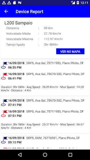 Relatório de rotas completo mostrando cada inicio e fim de trajeto.