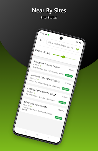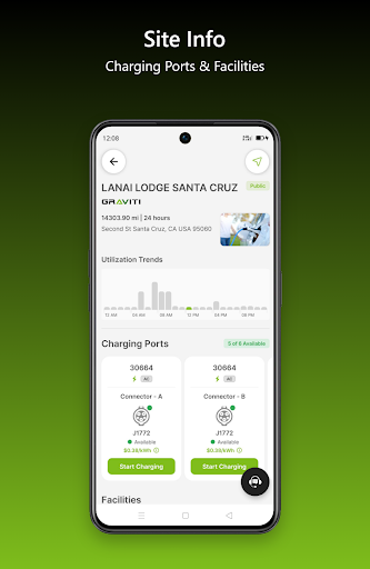– Details Site Info Screen: You can view detailed information about charging stations, including location, Availability, Amenities, Pricing, Opening times and more.