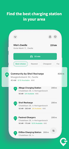 The app contains all the info you need to choose the right charging station: connector type, charging capacity, opening hours, as well as reviews from the GRID community.