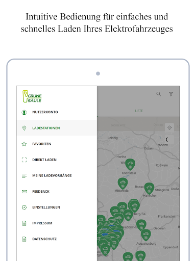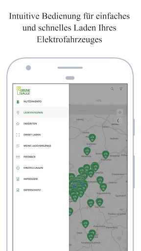 Die Grüne Säule-App bietet Ihnen Zugang zu unseren Ladepunkten sowie zu jenen unserer Roaming-Partner. Die App zeigt verfügbare Ladepunkte in Ihrer Nähe und kann Sie dorthin navigieren. Der Ladevorgang kann über die App gestartet werden.