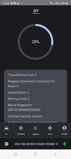 Gt-Flasher is an application that allows users to flash and log modern Engine and Gearbox management systems using the UDS protocol over USB and BLE.