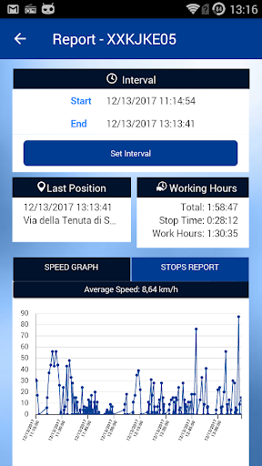 The App enables to track and localize the vehicle with the integrated device in real-time, verifying routes history; blocking ignition in case of theft; verifying maintenances and deadlines. Through the Report section, it is possible to analyze stops, routes and speed.