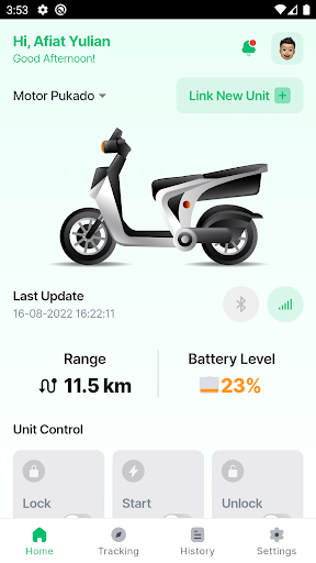 Gtrack eBike is an application to make user always in control to their eBike. Use apps as a key (lock, unlock, start and even find your eBike by triggering the alarm), find the battery swap, service center and workshop location, get ride report, push the latest updates. The Gtrack eBike keeps you constantly synced to your eBike so user will have a flexibility with their eBike.