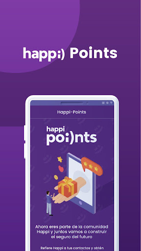 Refiere Happi a tus contactos y gana 250 Happi Points por cada persona que contrate una póliza. Aplica tus puntos hacia el pago de tus servicios y ahorra aún más (1 Happi Point = MXN$1)