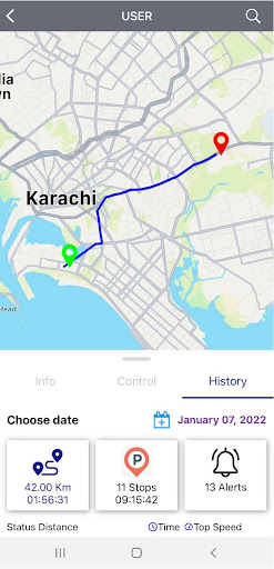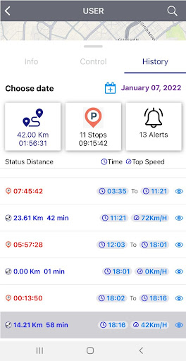 • Receive alarms from the vehicle such as speeding, idling, fence, etc.