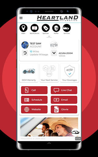 The Heartland Automotive Group app provides a portal for users to: