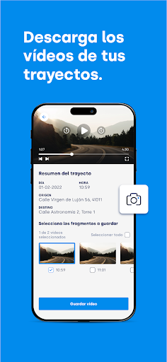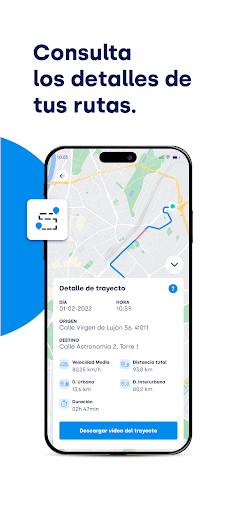 Desde la app de Hello Auto puedes consultar la ubicación de tu vehículo así como guardar tus trayectos y estadísticas de conducción. También podrás descargar los vídeos grabados durante tus rutas, conocer tu puntuación en nuestro ranking de conducción y, como asegurado de Hello Auto, podrás acceder a los datos de tu póliza de seguros.