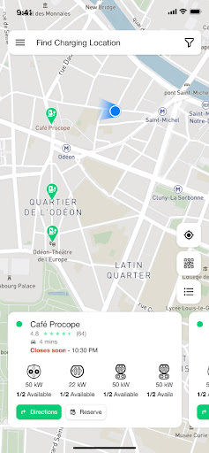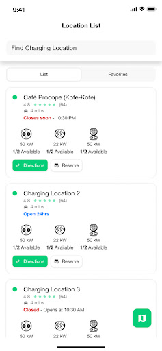 This app helps EV drivers to find out nearby charging stations, navigate, make reservations and initiate charging by scanning QR code. Also, the app shows charging history and reservation history.