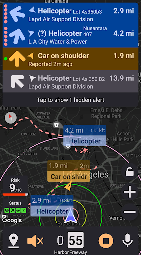 Crowd-sourced alerts: Highway Radar can connect to a sever aggregating crowd-sourced alerts and show them on the map. It also issues audible voice warnings and optionally a beeper to grab the attention. Currently, the application supports alerting on speed traps and road hazards reports.
