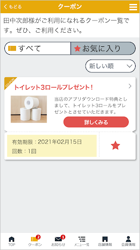 登録した店舗で実施中のキャンペーン情報や各種最新情報をお届けします。