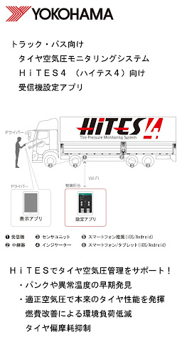 日本国内トラック・バス内向けタイヤ空気圧モニタリングシステム(TPMS) HiTES4(ハイテス)の受信機設定操作用アプリです。