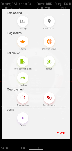 – datalogging tool – continuous recording of all parameters and car GPS position for detailed analysis, export to .csv file format