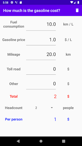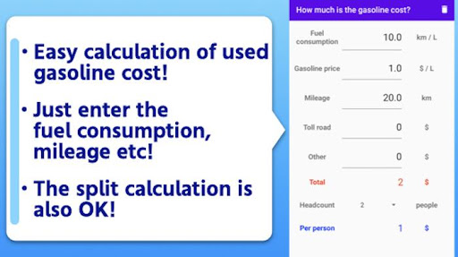 It is an application that calculates the gasoline cost automatically by entering the necessary information.