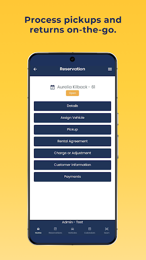 This mobile app focuses on the check-in and check-out process when a customer comes to pick-up or return a vehicle. From your phone, you are able to assign a vehicle to the reservation and take pictures of the vehicle that will be added to the Rental Agreement. The Rental Agreement can then be signed from the phone and is emailed to the customer.