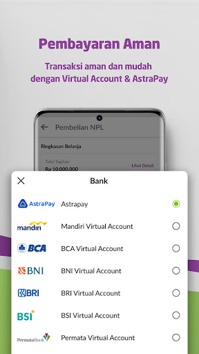 • Opsi pelunasan unit & pembelian NPL melalui virtual account dengan 7 pilihan bank & e-wallet