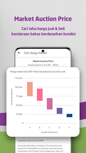 • Cek estimasi harga jual beli mobil bekas & motor bekas melalui fitur Market Auction Price (MAP)