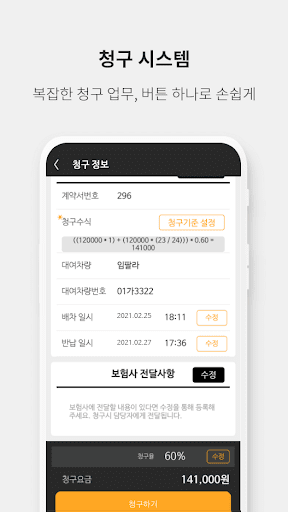 – 외근할 때 할 수 없었던 보험대차 청구를 3번 터치로 발송합니다.