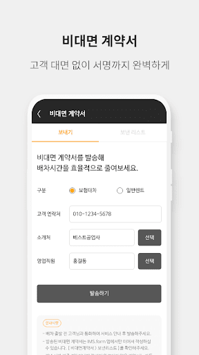 – 고객에게 선계약서 입력을 요청하여 1분안에 배차 계약서 작성을 가능하게 했습니다.