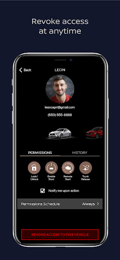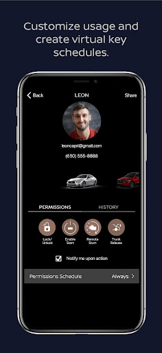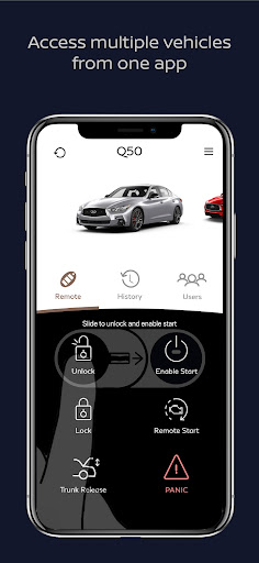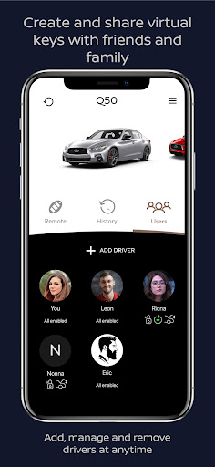 The INFINITI Virtual Key can be used to access and control multiple vehicles simultaneously from one vehicle owner account. It can also be used to see the usage history from every user.
