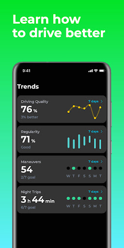 • View all driving statistics and your trips on the map