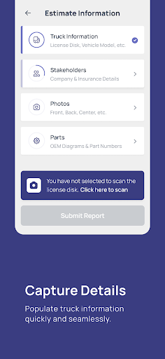 The app includes a license scanner, enabling the automated filling of the truck’s VIN, chassis number, make and model. The scanner effectively reduces the manual effort required to write up a repair estimate as well as mitigate the risk for human error when filling critical input fields.